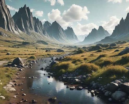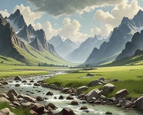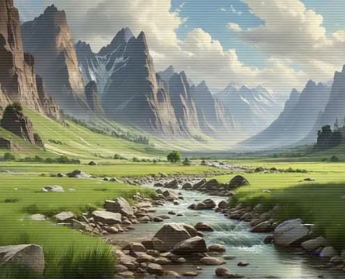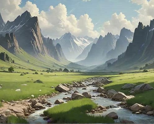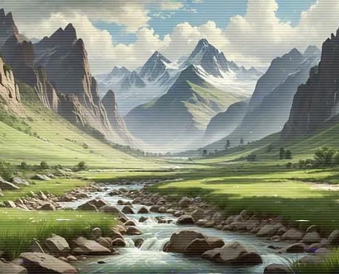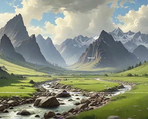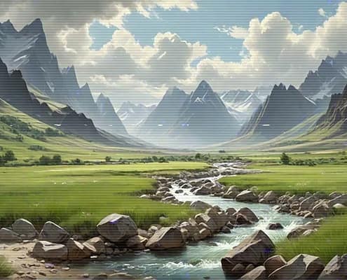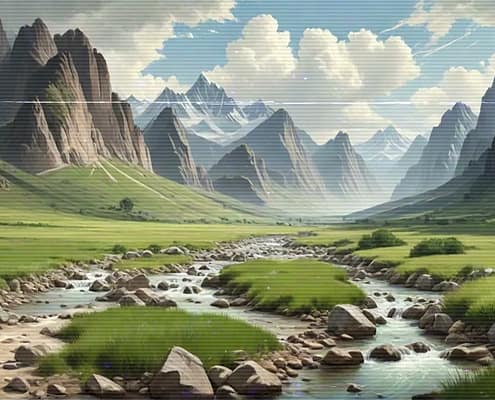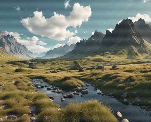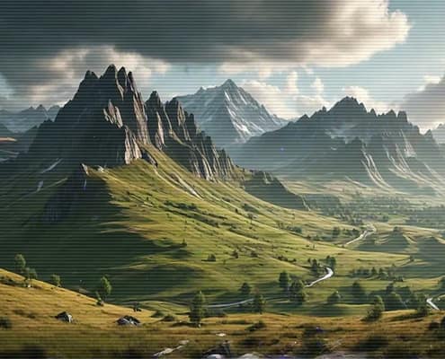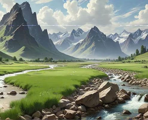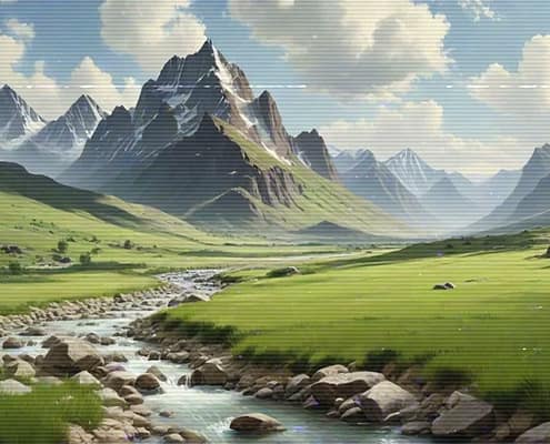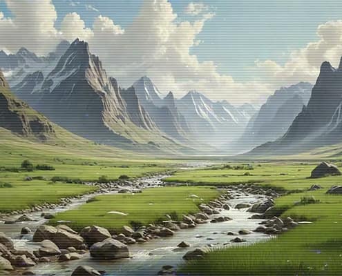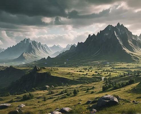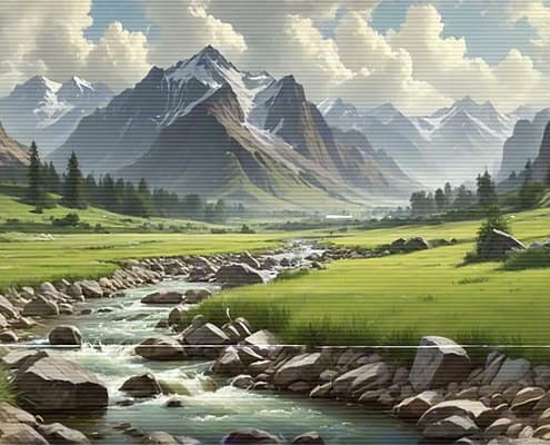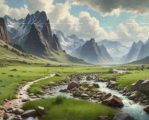 Relax after a busy day with the serene and calming melodies of the Lo-Fi Mountains Landscape series. Allow the soft tunes to cultivate a cozy and inviting atmosphere, ideal for unwinding and finding peace.