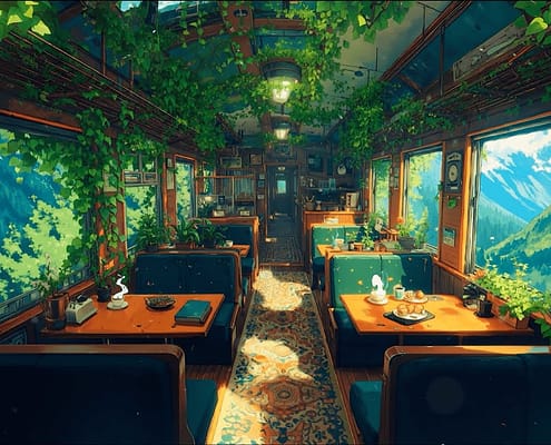 Green Vintage Express 🌱 Peaceful Lofi Vibes for Forest Train Journey ☕ Lofi Jazz Hip Hop to Focus