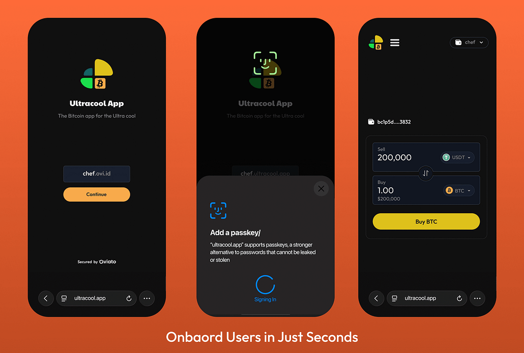 Oviato, a chain-agnostic wallet infrastructure company, unveiled today at Bitcoin Amsterdam its passkey native embedded wallet SDK for Bitcoin.
